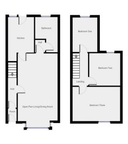 Accommodation consists of Entrance Hallway, Spacious Lounge/ Diner, Kitchen, Bathroom with separate shower cubicle and 3 Bedrooms. Rear courtyard garden with views.