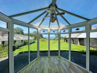 The outbuildings include a 2 x traditional stone barns and Dutch barn. The granary is split on two levels with stunning sea views and offers potential for conversion along with the two traditional barns.