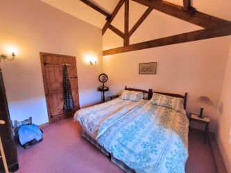 Another spacious reception room again with a vaulted beamed ceiling and exposed stonework. Fitted carpet. Radiator. Power points. French door giving access to the central courtyard.
