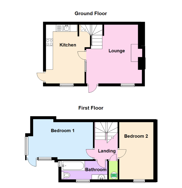 Access to the property is up some steps off the roadside to the front of the cottage, with the main front door in front of you, which leads directly into the lounge, and a door accessed off the patio to the side which enters into the kitchen. Both doors are UPVC stable doors.