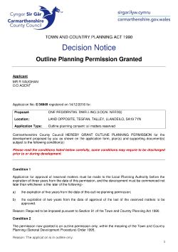 Carmarthenshire County Council HEREBY GRANT OUTLINE PLANNING PERMISSION for the