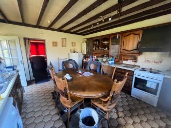 Kitchen - 5.213m x 4.131m (17' 1" x 13' 7") Fitted with a range of base and wall units and drawer space with colour coordinated roll top work surface space and preperation area incorporating sink unit with hot and cold mixer taps over, built in electric fan assited cooker, plumbing for both dish washer and automatic washing machine, space for fridge freezer, beamed ceiling, wall mounted boiler (supplying domestic hot water and gas central heating), ceramic tile flooring, part tiled walls, spot lighting and double glazed window looking onto the rear garden and door to side and rear garden.