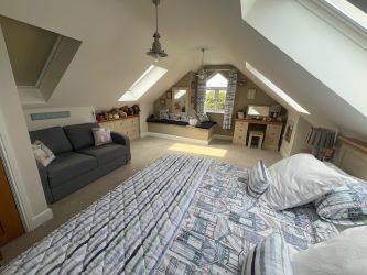 The attached overflow accommodation/studio seamlessly complements the main farmhouse. It benefits from an open-plan lounge/kitchen/diner a convenient shower room, the bedroom is located at the end and is a timer addition to the side of the property.