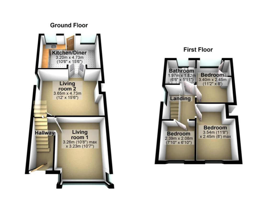 Bedroom 1w: 2.75m x l: 3.4m x h: 2.55m