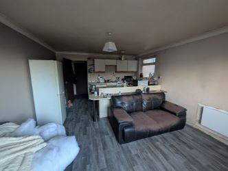 Open plan lounge and kitchen with separate bathroom.