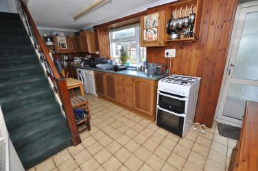Fitted base and eye-level units, with 1 ½ bowl sink. Plumbing for washing machine and dishwasher. LP Gas cooker point. Understairs storage cupboard. Staircase leading to first floor. UPVC double glazed window to rear. Double glazed door leading out to rear porch.