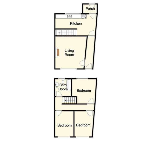 Fitted base and eye-level units, with 1 ½ bowl sink. Plumbing for washing machine and dishwasher. LP Gas cooker point. Understairs storage cupboard. Staircase leading to first floor. UPVC double glazed window to rear. Double glazed door leading out to rear porch.