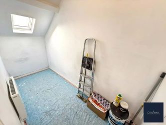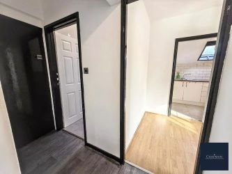 The generous proportions are further enhanced by large windows, which not only illuminate the rooms but also provide an inviting atmosphere. Laminate flooring extends across the principal rooms, offering both durability and a seamless aesthetic that pairs beautifully with the flat’s neutral decor.